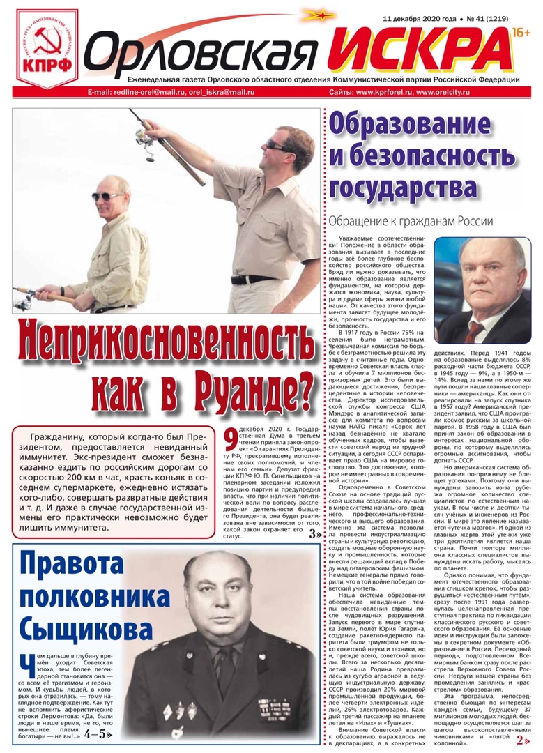 Орловская искра №41 (1219) от 11 декабря 2020 года