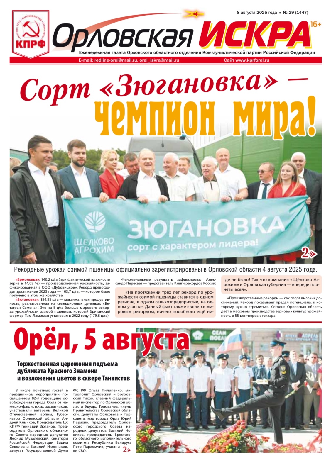Орловская искра №29 (1347) от 08 августа 2025 года