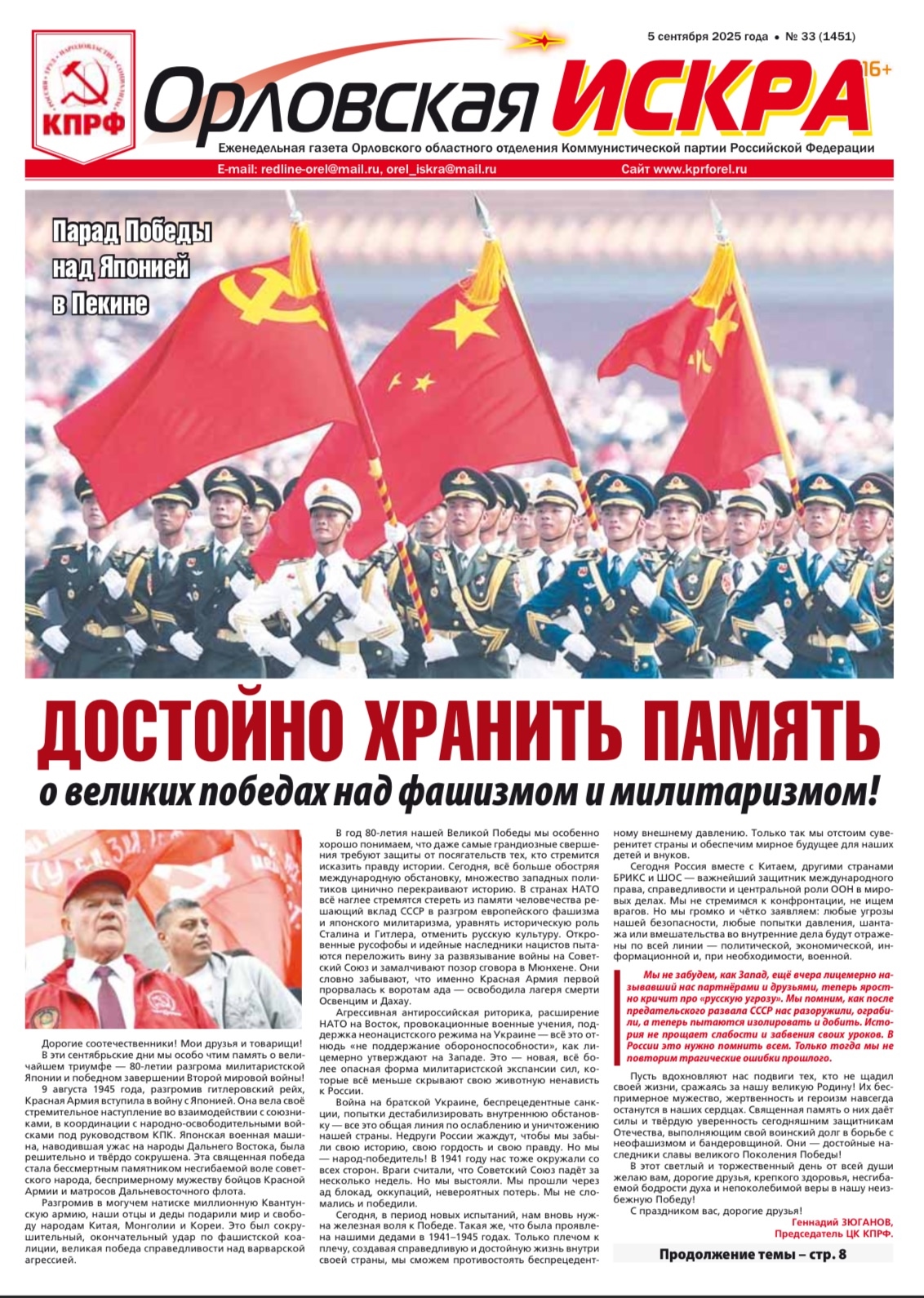 Орловская искра №33 (1351) от 05 сентября 2025 года