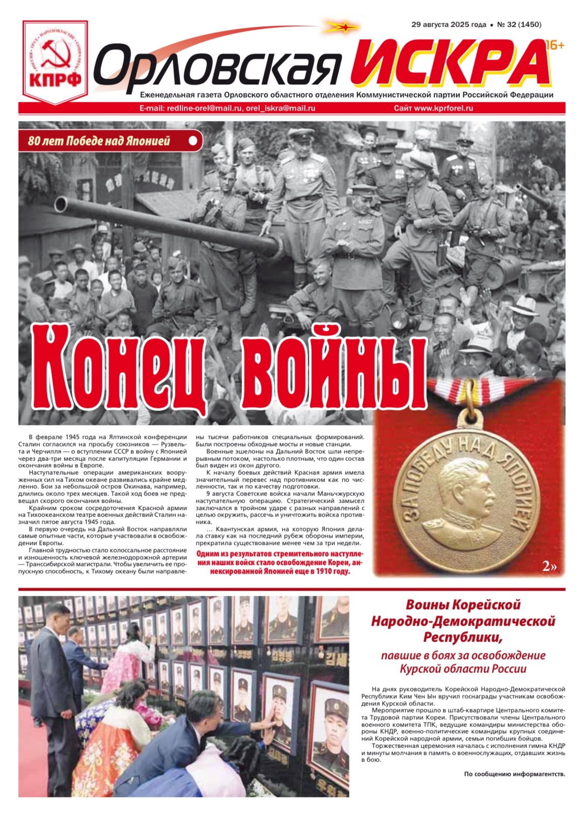 Орловская искра №32 (1350) от 29 августа 2025 года