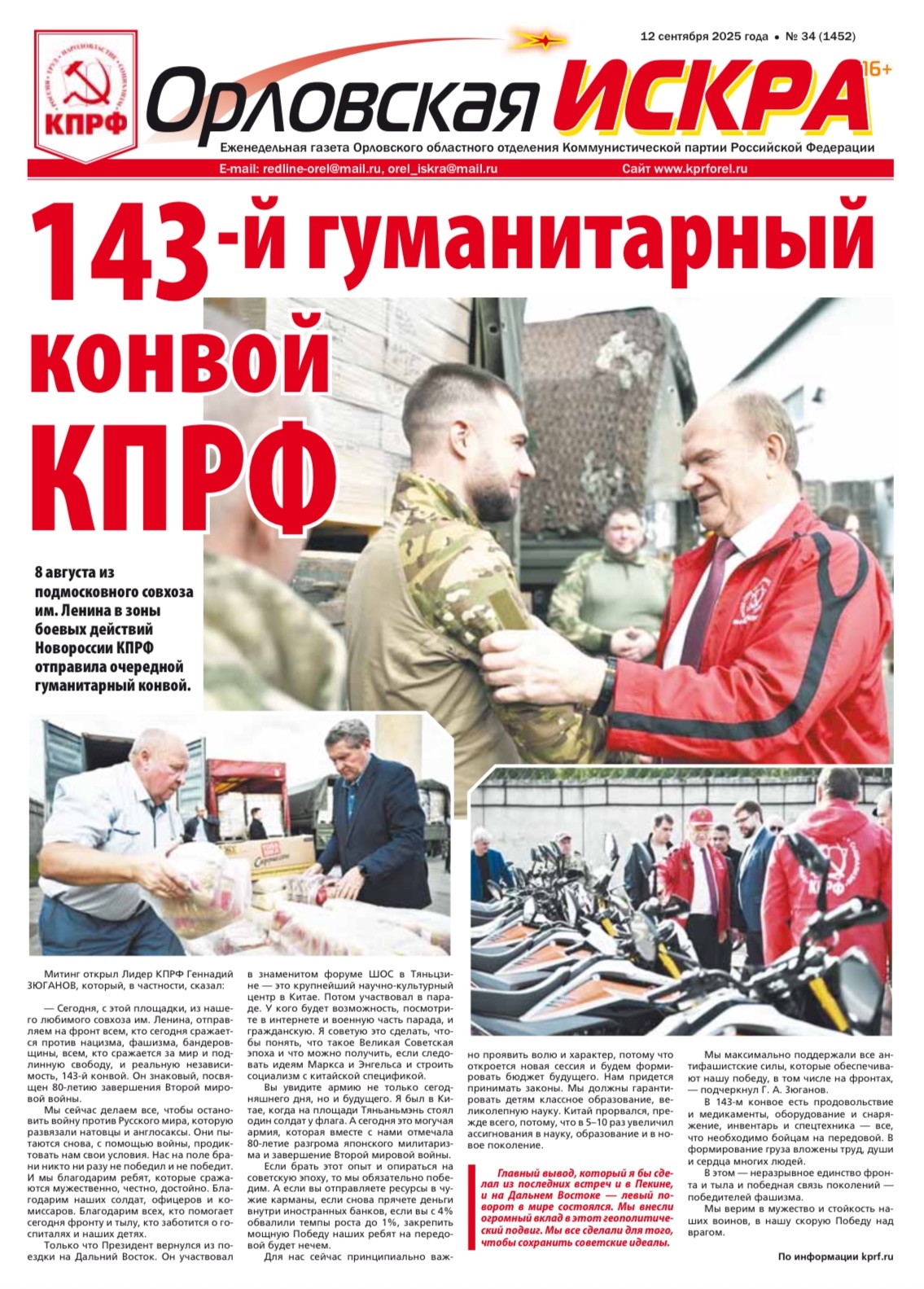 Орловская искра №34 (1352) от 12 сентября 2025 года