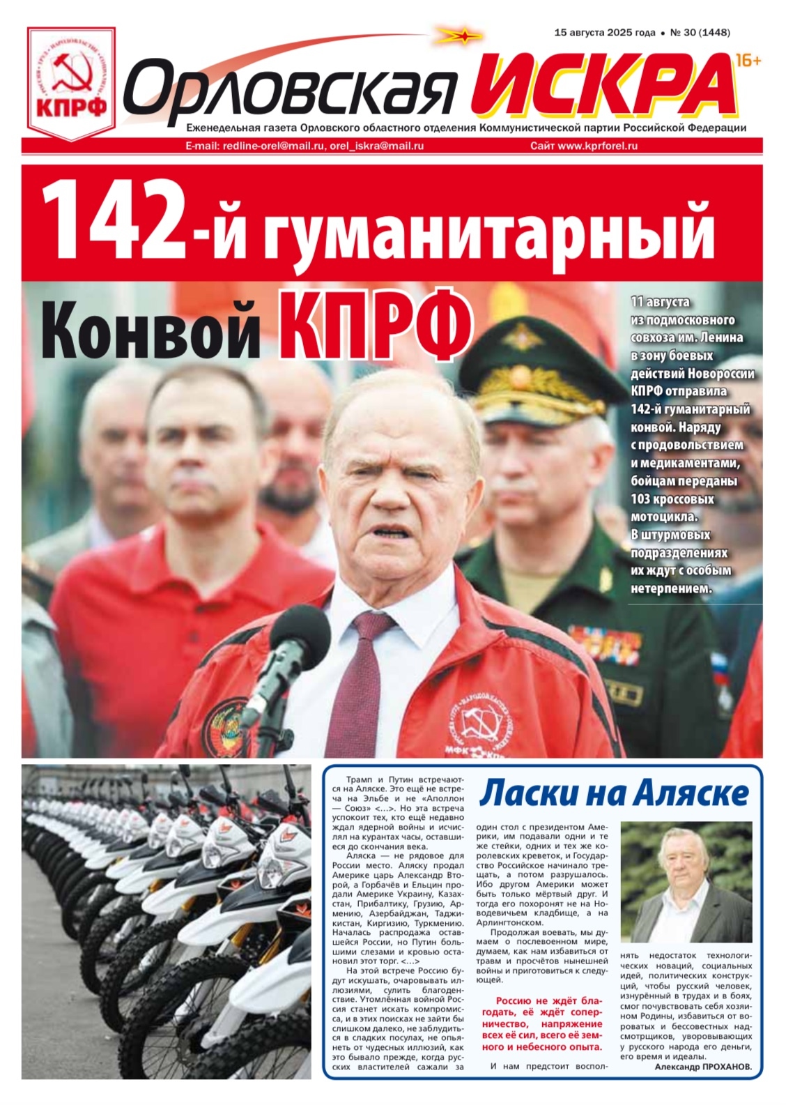 Орловская искра №30 (1348) от 14 августа 2025 года