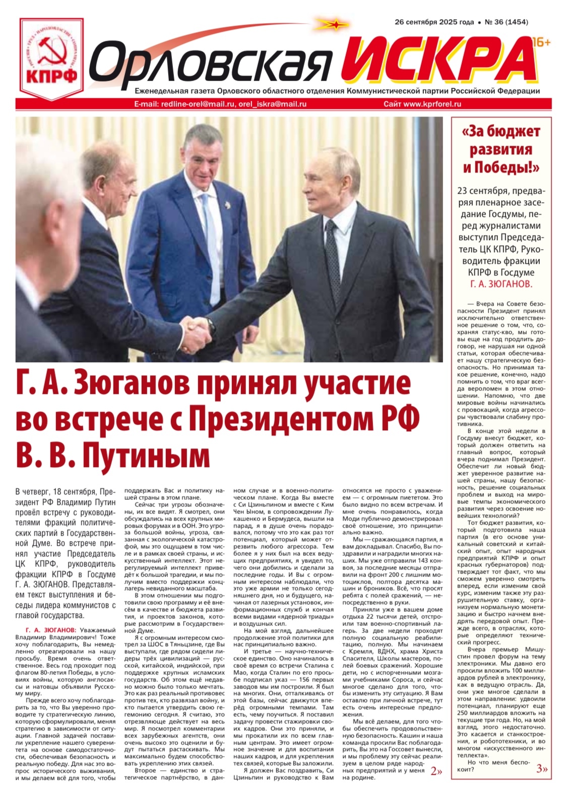 Орловская искра №36 (1354) от 26 сентября 2025 года