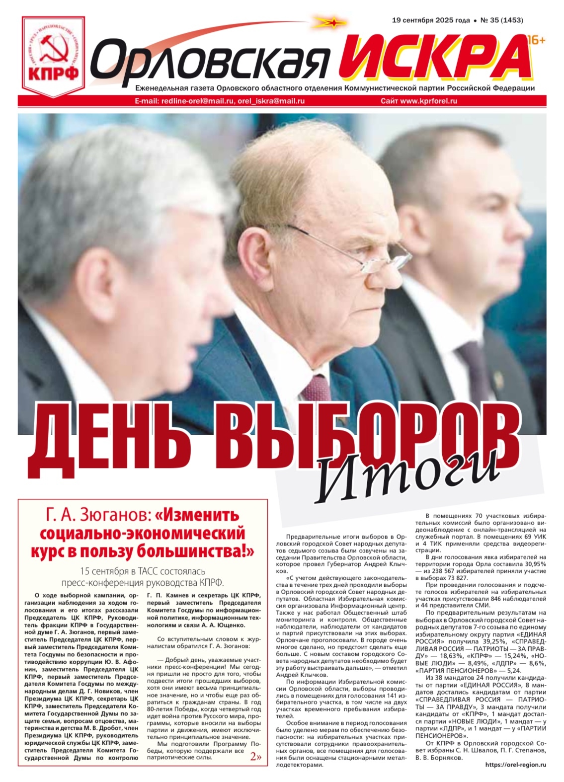 Орловская искра №35 (1353) от 19 сентября 2025 года
