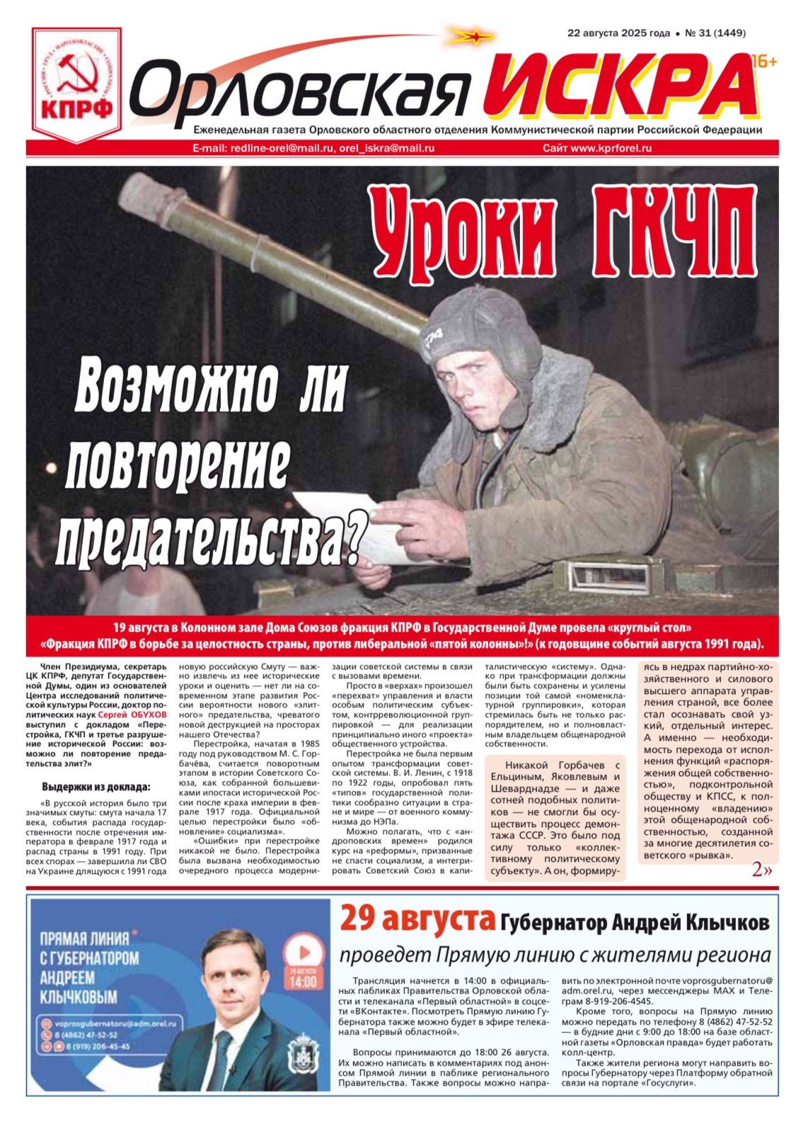 Орловская искра №31 (1349) от 22 августа 2025 года