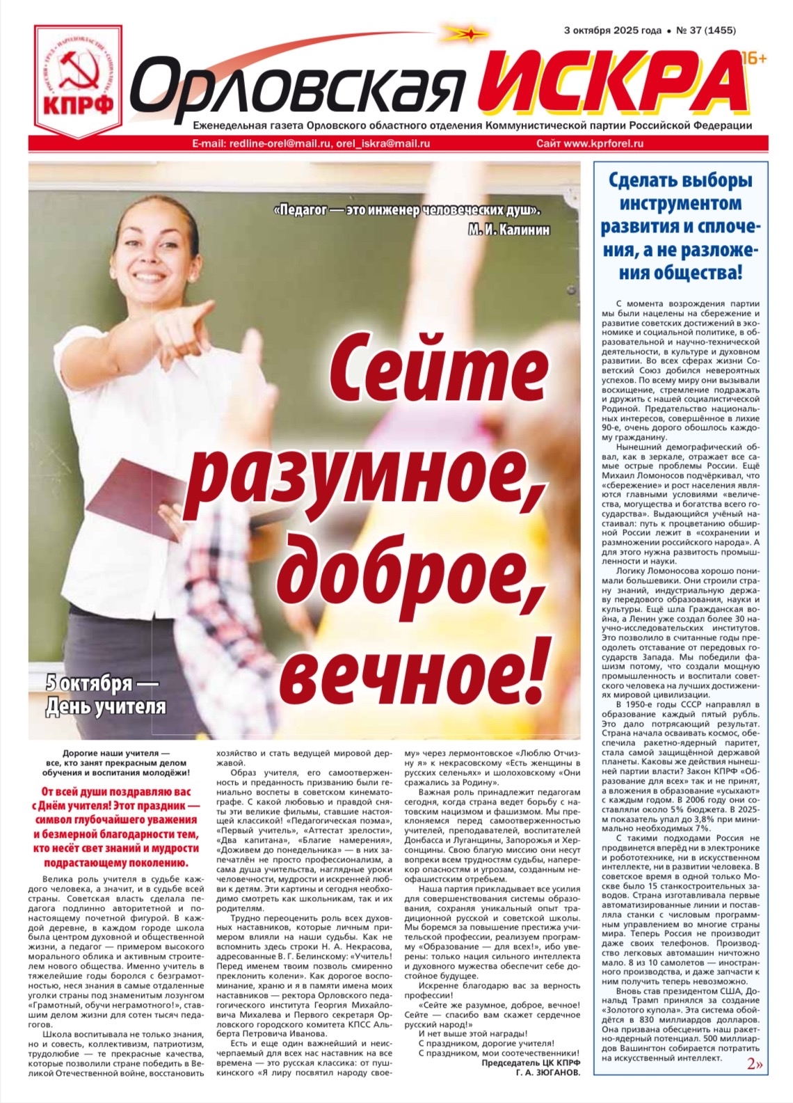 Орловская искра №37 (1355) от 03 октября 2025 года