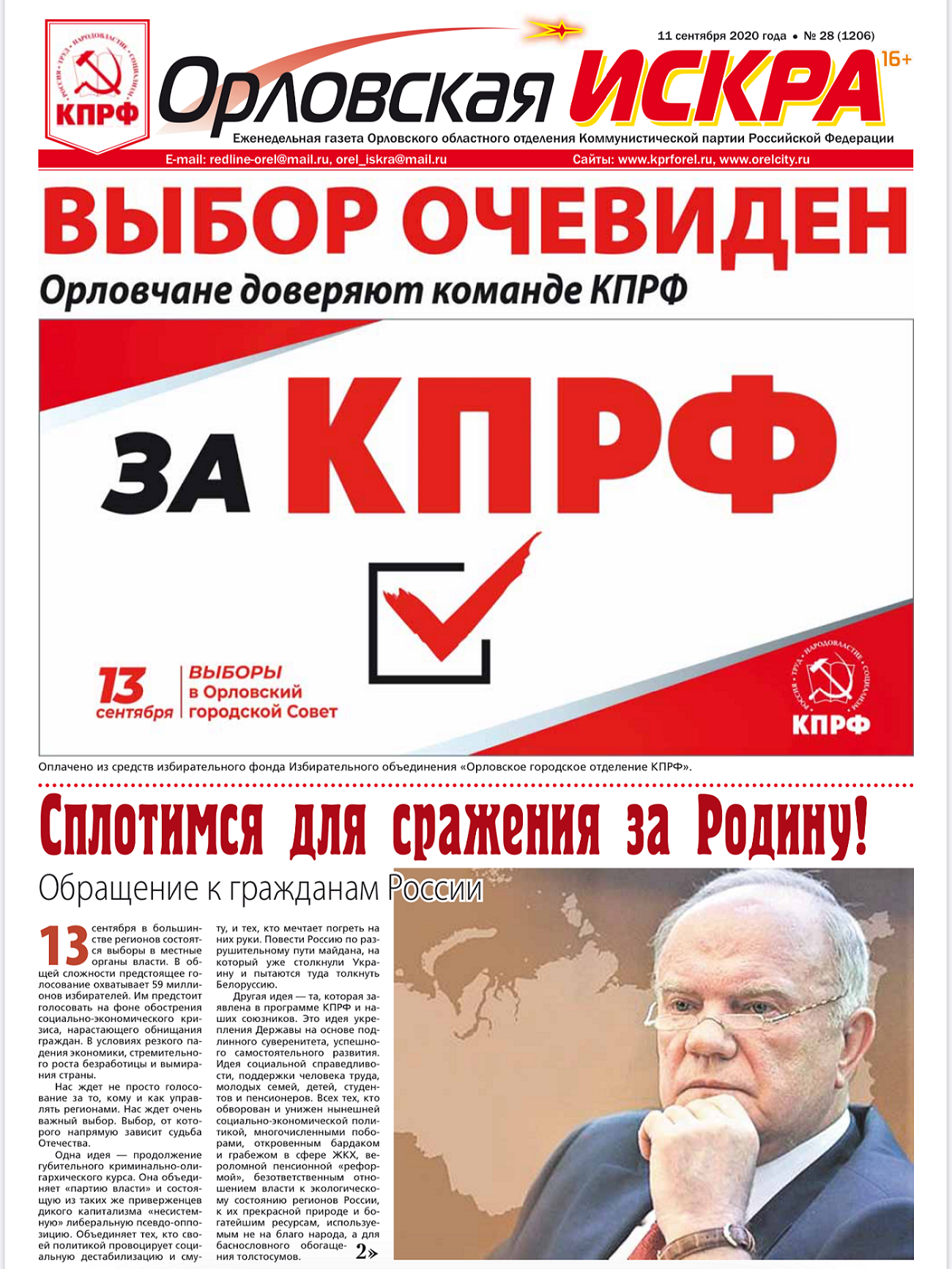 Орловская искра №28 (1206) от 11 сентября 2020 года