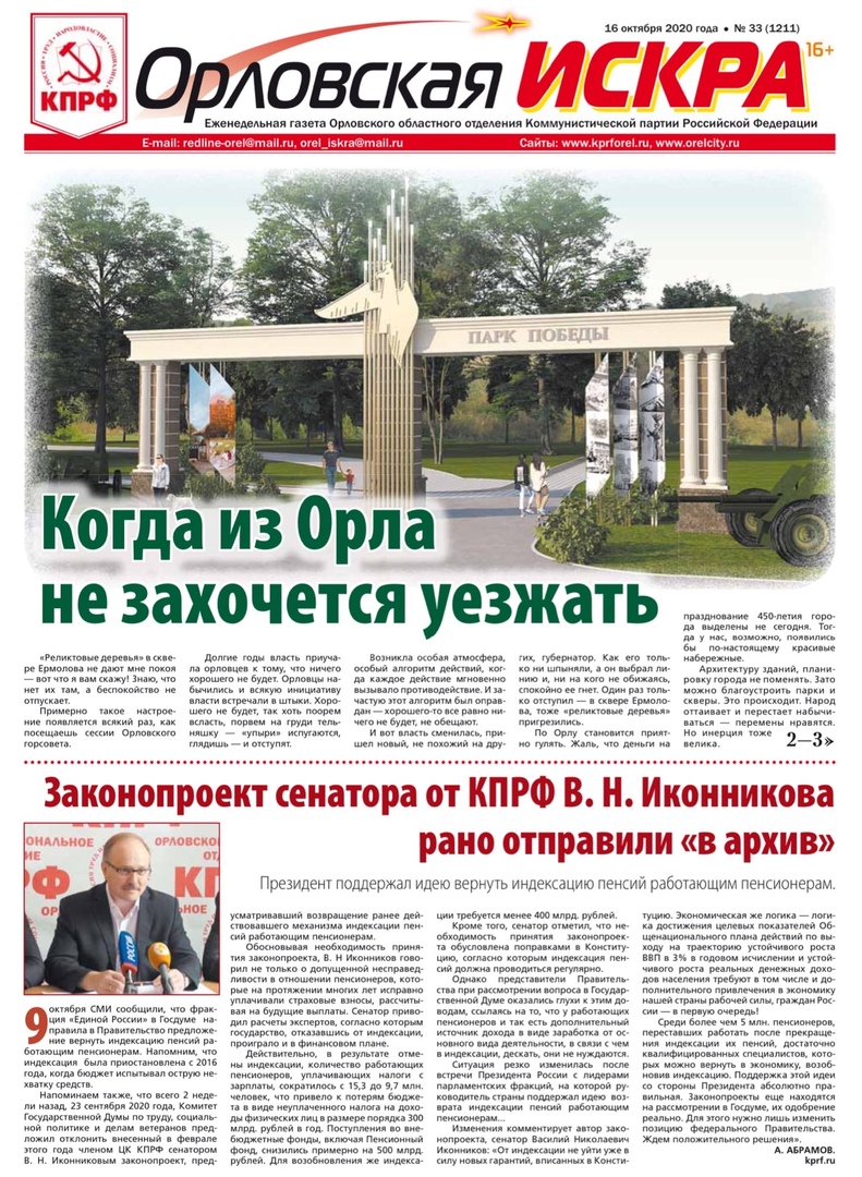Орловская искра №33 (1211) от 16 октября 2020 года