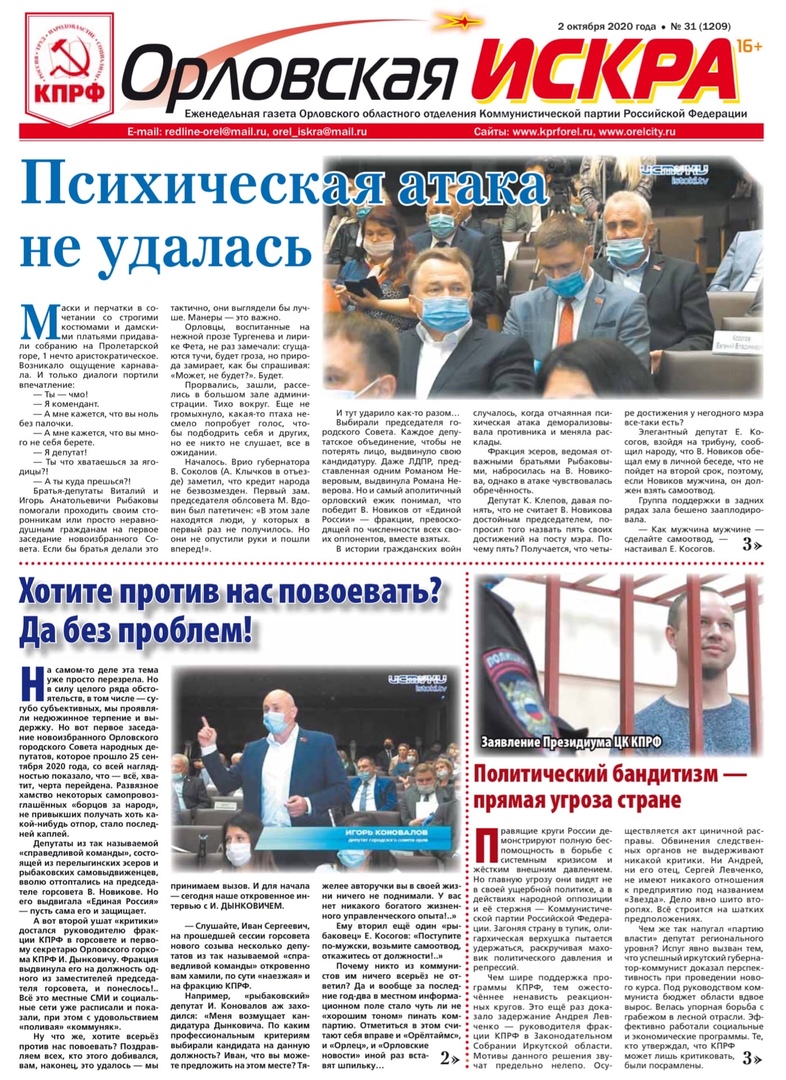 Орловская искра №31 (1209) от 02 октября 2020 года