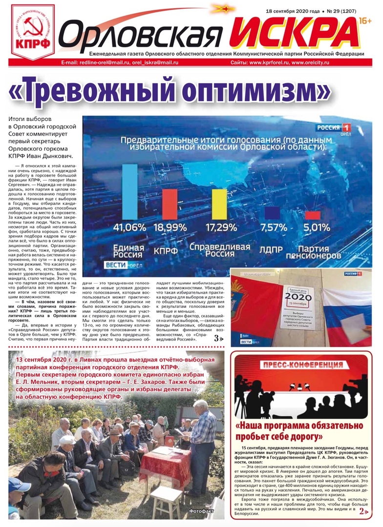 Орловская искра №29 (1207) от 18 сентября 2020 года