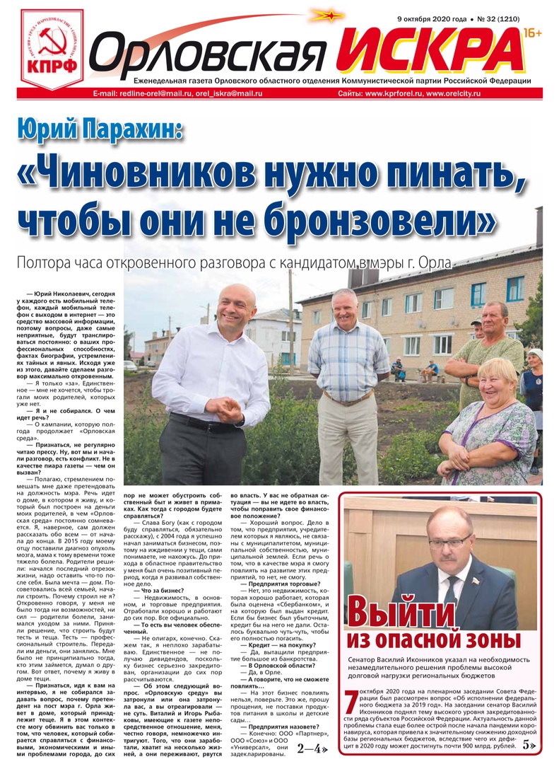 Орловская искра №32 (1210) от 09 октября 2020 года
