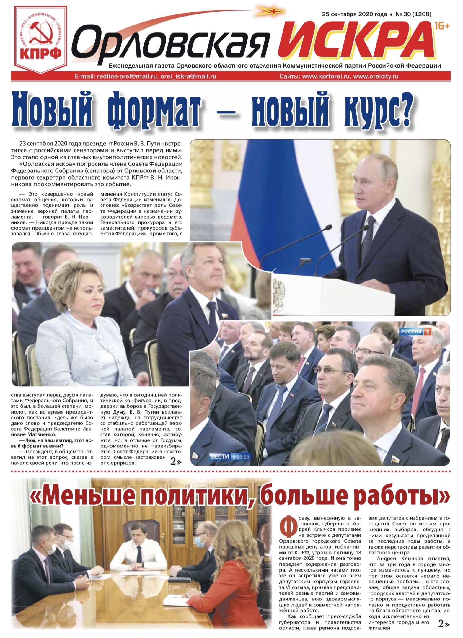 Орловская искра №30 (1208) от 25 сентября 2020 года