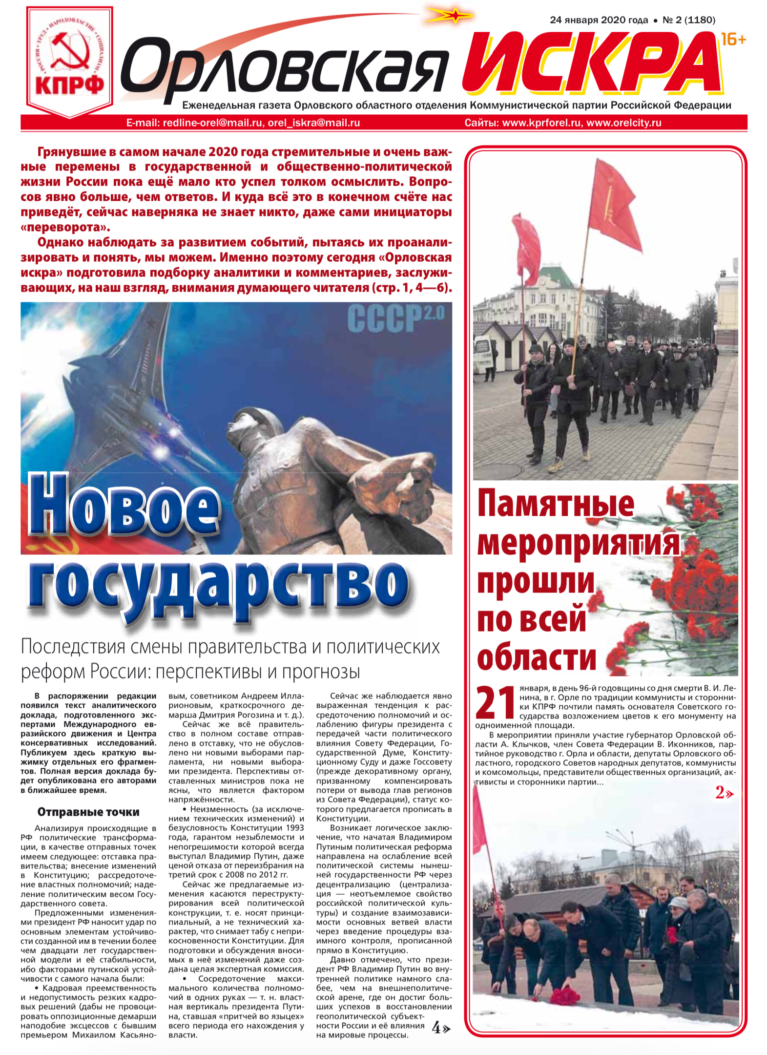 Орловская искра №2 (1180) от 24 января 2020 года