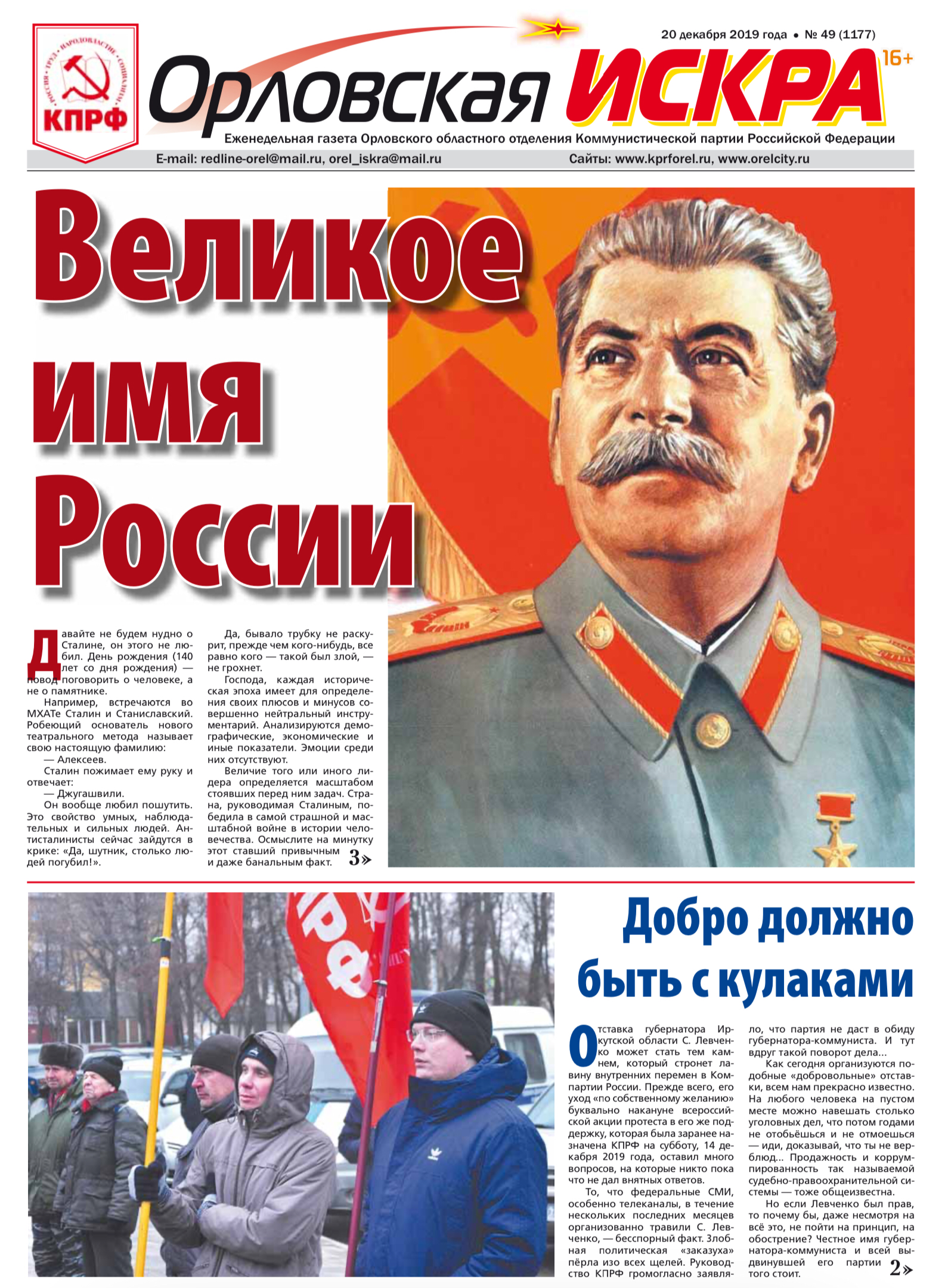 Орловская искра №Свежий выпуск газеты "Орловская искра" N49 (1177) от 20 декабря 2019 года