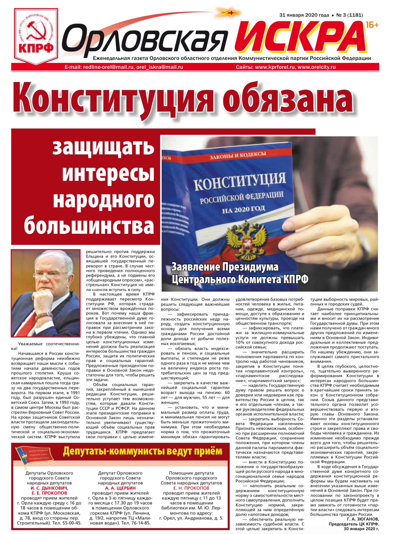 Орловская искра №3 (1181) от 31 января 2020 года
