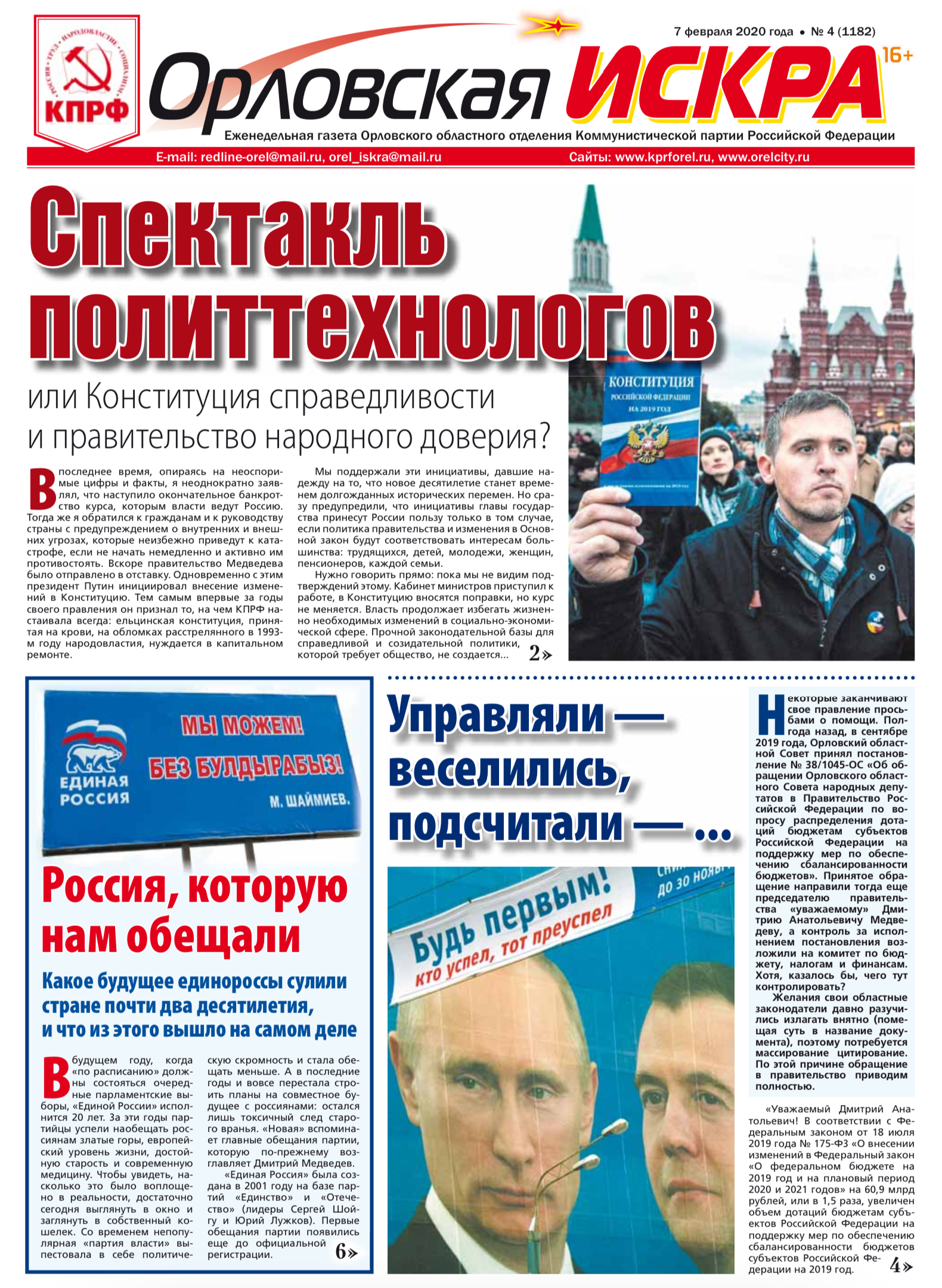 Орловская искра №4 (1182) от 07 февраля 2020 года