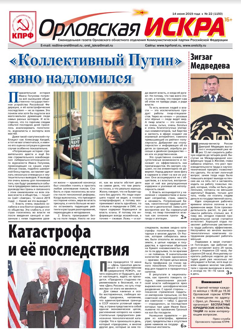 Орловская искра №22 от 14 июня 2019 года