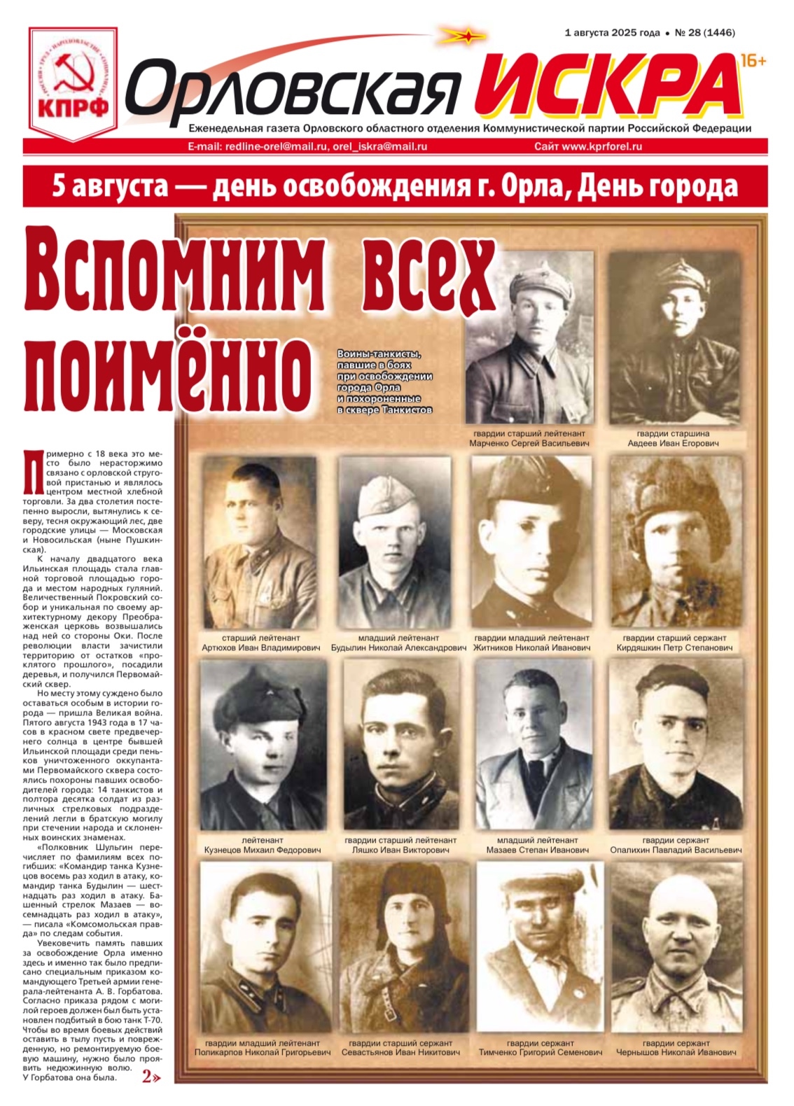 Орловская искра №28 (1346) от 01 августа 2025 года