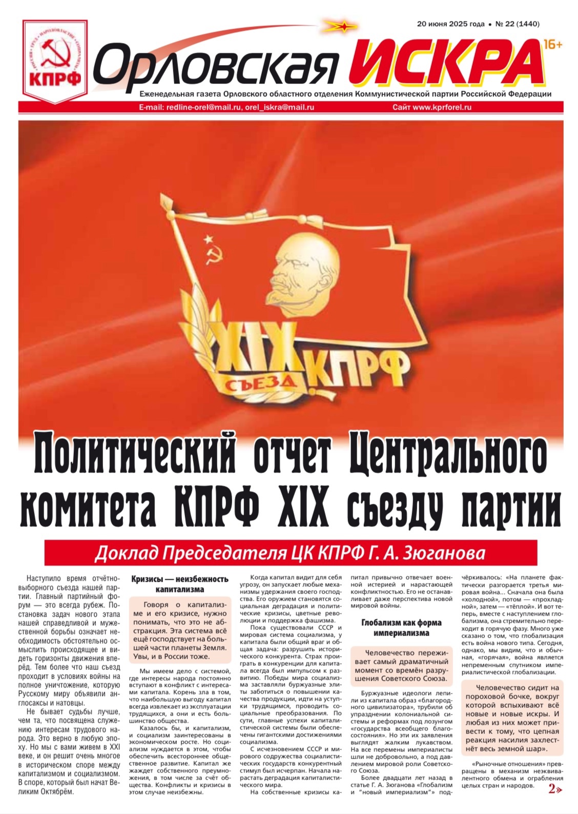 Орловская искра №22 (1340) от 20 июня 2025 года