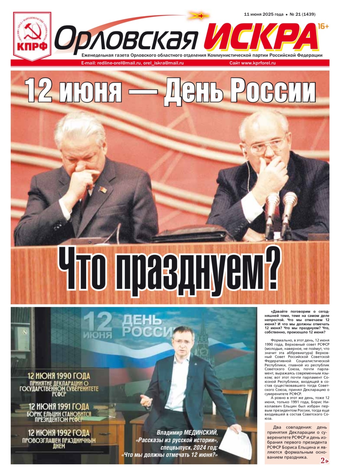 Орловская искра №21 (1339) от 11 июня 2025 года