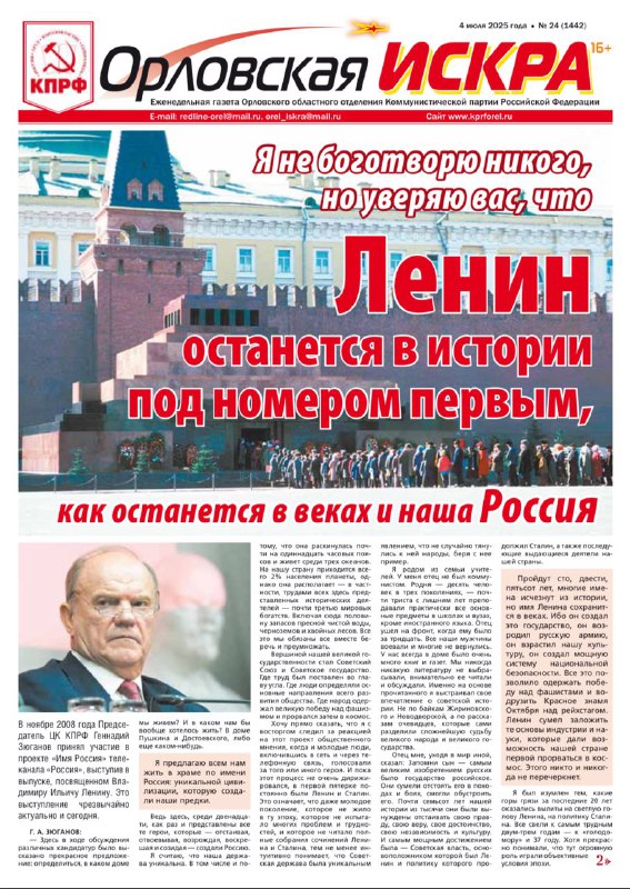 Орловская искра №24 (1342) от 04 июля 2025 года