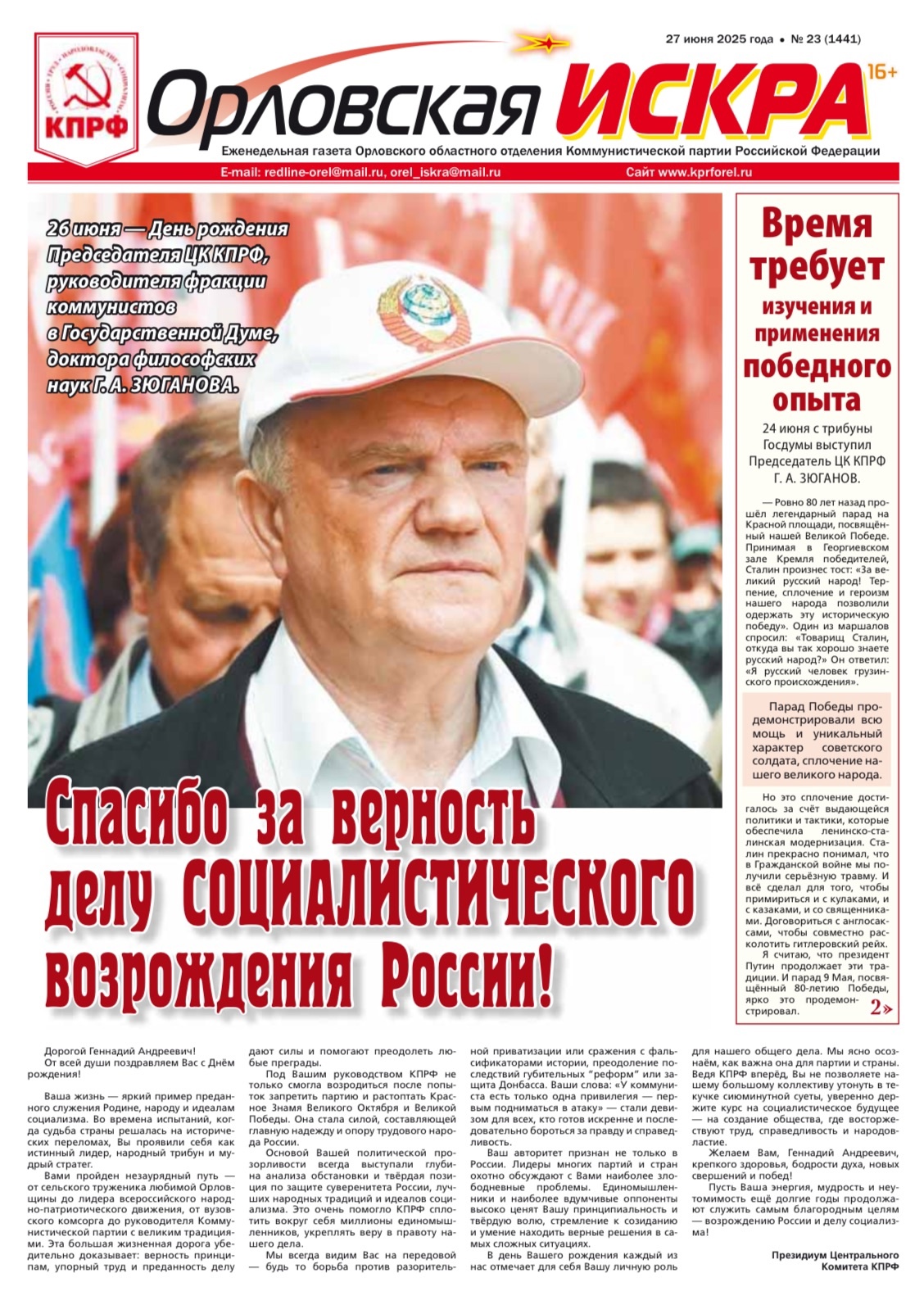 Орловская искра №23 (1341) от 27 июня 2025 года