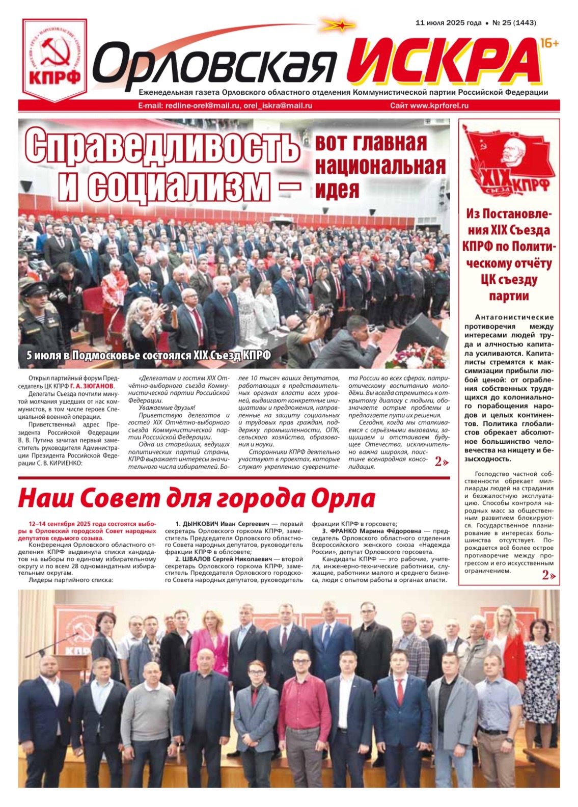 Орловская искра №25 (1343) от 11 июля 2025 года